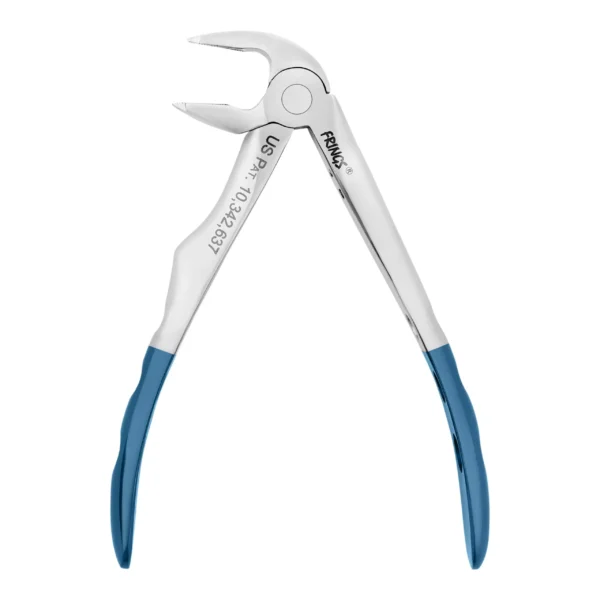 Designed for atraumatic extractions, FRINGS® tapered, beveled, and serrated beaks evenly distribute pressure on teeth to minimize tooth fracture and protect surrounding bone and tissue. Each FRINGS is crafted with German 420 surgical stainless steel for dependable performance, ensuring predictable results with every case.