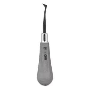 Designed by Dr. Jason Auerbach, aka Bloody Tooth Guy, ideal for use in the posterior of the mouth, facilitating the elevation of lower molars by engaging the tooth in its furcation. Allows access and unidirectional elevation of fractured teeth and roots. Diamond-dusted handle, titanium-nitride coating, and crafted with 100% German Stainless Steel to improve longevity. Comes with a lifetime warranty against any manufacturing defects.