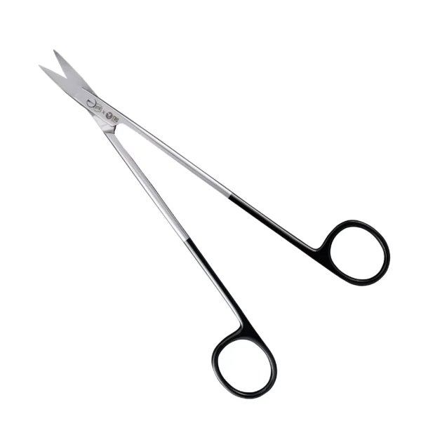 Scissors with one micro-serrated blade are ideal for trimming tissue or cutting sutures