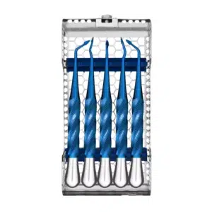 The elvatomeĀ® 2.0 Kit comes with all 5 spade elvatomes in a sterilizable cassette to access the full mouth during any minimally traumatic (atraumatic) extraction.