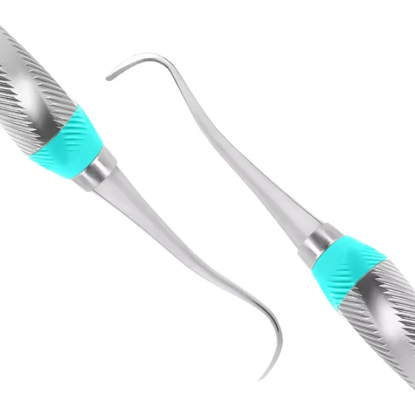 Universal Curette, designed for subgingival calculus removal on tight interproximal surfaces, featuring two cutting edges for effective cleaning. rezSHARP™ Scalers and Curettes are made from Italian Aerospace-Grade Stainless Steel with our proprietary grinding and honing process, and are clinically proven to stay sharp 3x longer than the nearest competitor. The patented TWIST Handle is designed to combat MSDs such as Carpal Tunnel with superior ergonomics, balance, and griping surface.