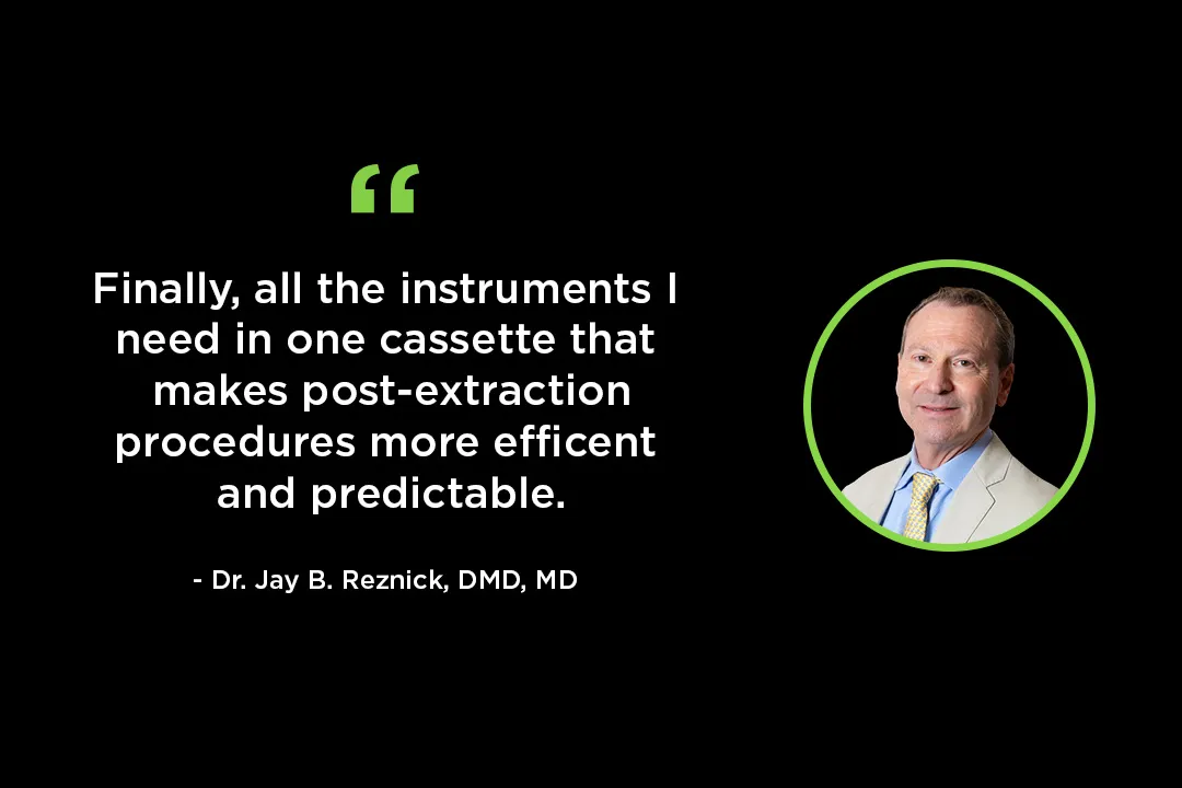 Experienced clinicians know that bone grafting can be tedious, messy, and frustrating. This all-in-one kit features nine precision instruments designed for efficiency and consistency. Designed by oral surgeon Dr. Jay B. Reznick, Each instrument supports frictionless post-extraction workflows, helping clinicians achieve predictable ridge preservation and minimize bone loss.