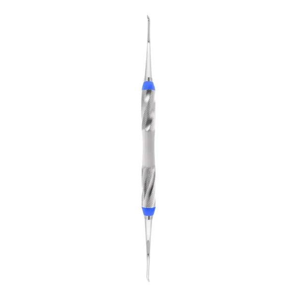 The Surgical Serrated Curette with Extended Shank is equipped with finely serrated, spoon-shaped blades designed for effective removal of granular tissue post-extraction, curettage, and tooth socket debridement. Its longer shank allows for easier access during curettage procedures, enhancing precision in deeper sockets. The ergonomic and patented TWIST Handle ensures superior control and comfort, making it ideal for extended use during complex procedures. This instrument is a must-have for professionals seeking precision and efficiency in socket debridement and tissue removal.